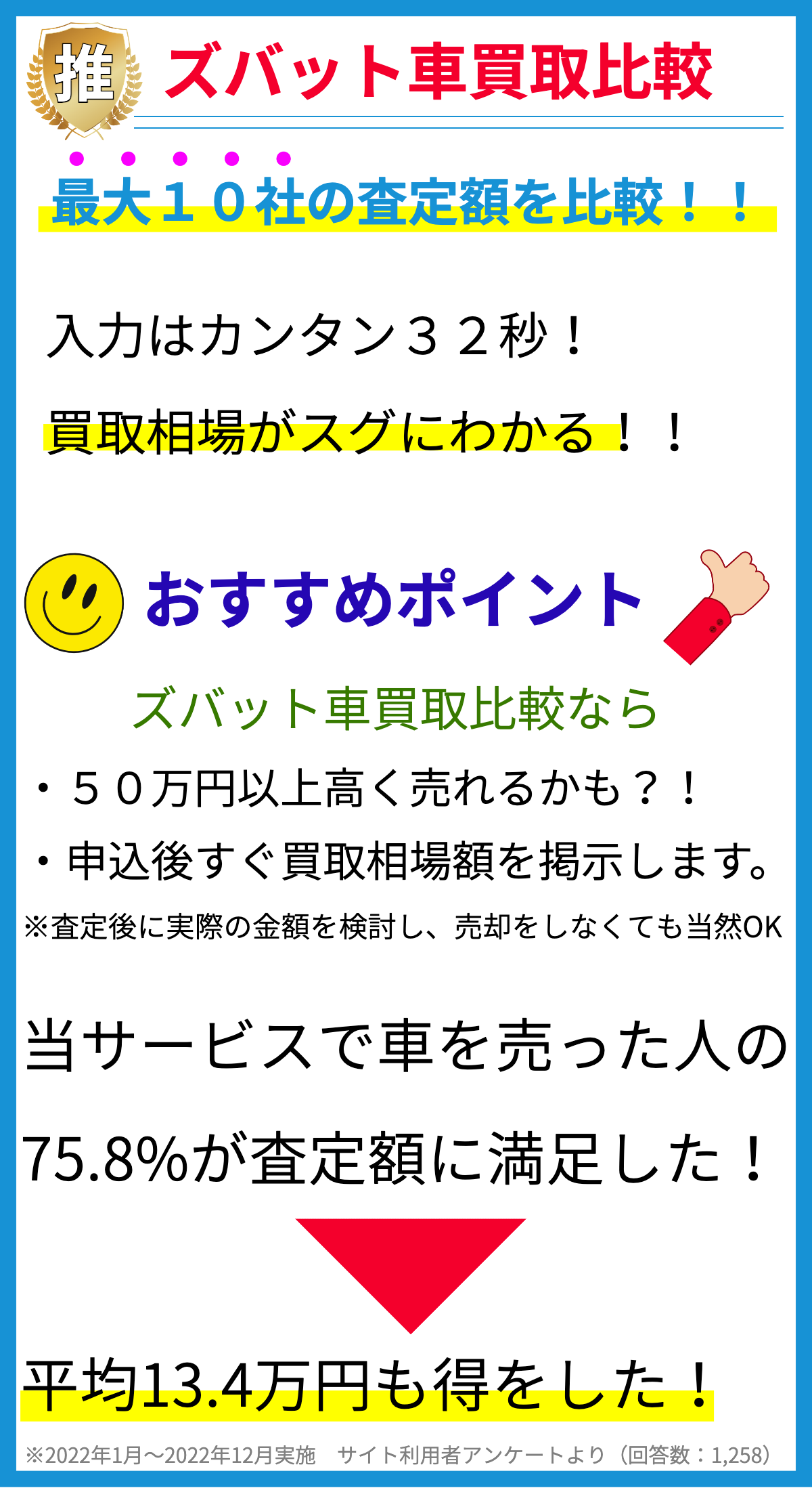 近年人気の一括査定サイトの中でも、特におすすめなのがズバット車買取比較・カービュー・ユーカーパックです。