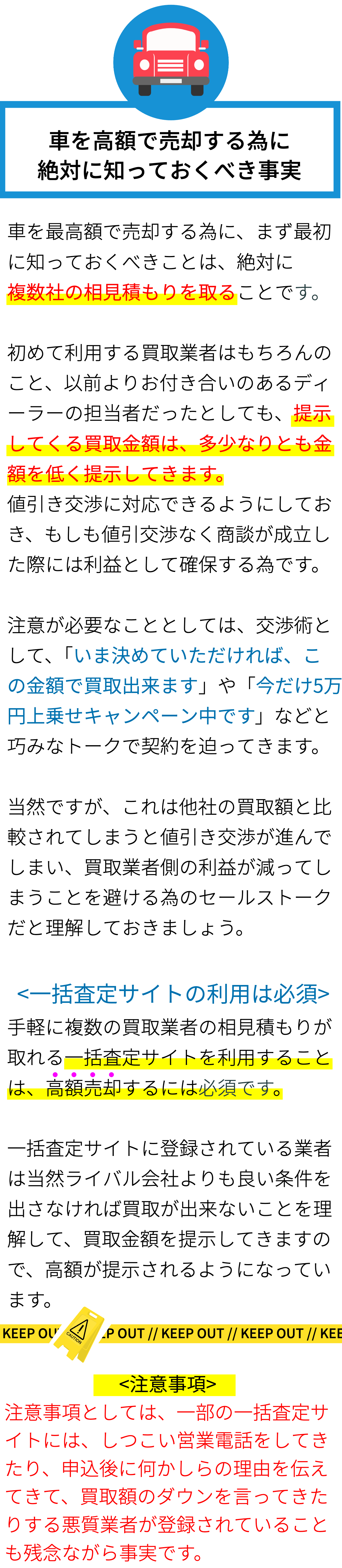 車買取一括査定は、手間を減らしつつ高額売却を目指せる賢い方法です。